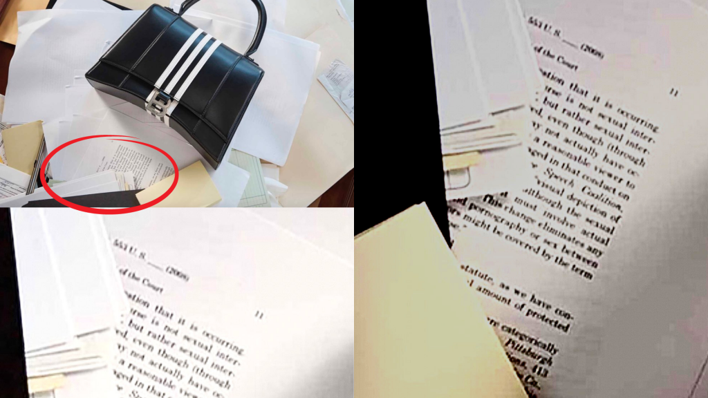 Lo que armó el revuelo (más allá de las fotos totalmente pervertidas de los niños) fue que alguien descubrió que entre las fotos había documentos "decorativos" que hacían mención a documentos judiciales vinculados a la pornografía infantil.